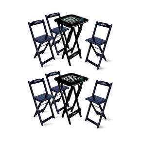 Kit 2 Conjuntos De Mesa Bistrô Dobrável Jack Daniel S Com 3 Banquetas De Madeira Preta O Conjunto Jack Daniel?s é ideal para bares, restaurantes, estabelecimentos, áreas de lazer e também para sua casa. Em madeira maciça, tornando-os resistentes e duráveis. Seu design permite que esse conjunto seja encaixado em qualquer ambiente, trazendo um toque a mais para seu estabelecimento. Além de sua durabilidade, o que lhe trará conforto para servir seus clientes. Por ser dobrável torna-se mais fácil guardar, manusear e limpar o produto.