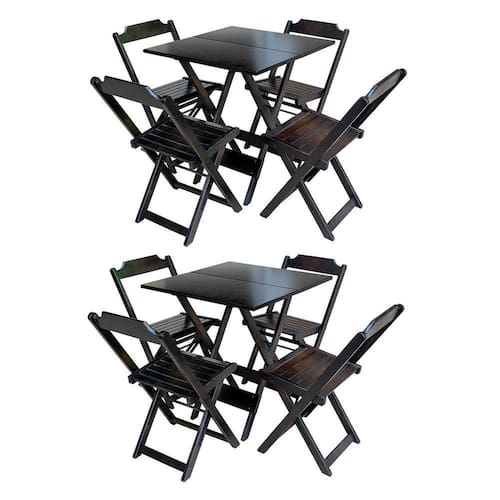 Kit 2 Conjuntos De Mesa Com 4 Cadeiras De Madeira Dobravel 70X70 Tabaco - Marrom
