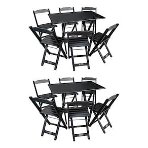 Kit 2 Conjuntos De Mesa Dobráveis De Madeira 70x110cm Com 6 Cadeiras Preta