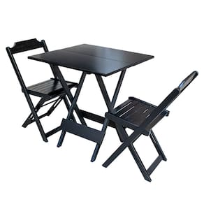 Kit 2 Conjuntos de Mesa Dobravel com 2 Cadeiras de Madeira 70x70 Ideal para Bar e Restaurante - Pret - Preto