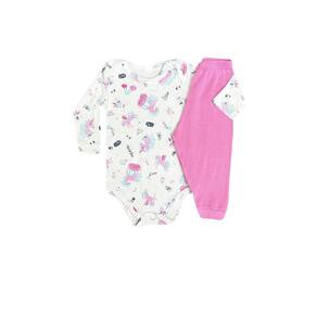 O Kit 2 Conjuntos Longos Estampados Bebê Menina Body + Calça Mijão - Latic Kids é essencial no guarda roupas da sua princesa. Os conjuntos básicos serão utilizados em toda a fase do bebê, principalmente por haver muitas trocas de roupas nos primeiros meses. O conjunto foi fabricado em ribana canelado, um tecido encorpado que seu bebê poderá usar tanto no verão quanto no inverno por baixo de outras peças mais quentinhas. Os bodies possuem estampas de unicórnio e o outro de corações. Já as calças são de cor única em tons de rosa.