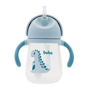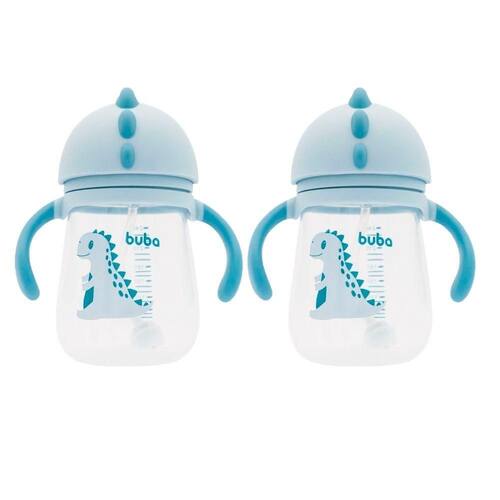 Kit 2 copinho para bebe infantil crianças água suco transição treinamento canudo e válvula 240 ml dino buba Cor: azul Kit com 02 copos.