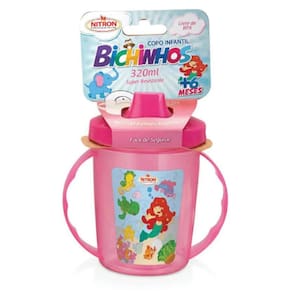 Cor: Rosa Tema: Bichinhos Material: Polipropileno Com Alça e Tampa com Bico Capacidade: 320ml Idade Recomendada: +6meses Medidas: 12 x 8 x 11 cm CxAxL Peso: 50g Marca: Nitronplast Cód Fornecedor: 227