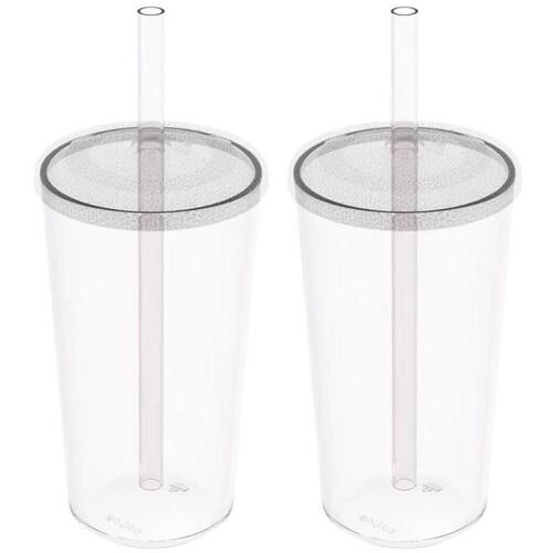 Kit 2 Copos com Tampa e Canudo 500ml Crippa Transparente Plástico Água Suco Bebidas