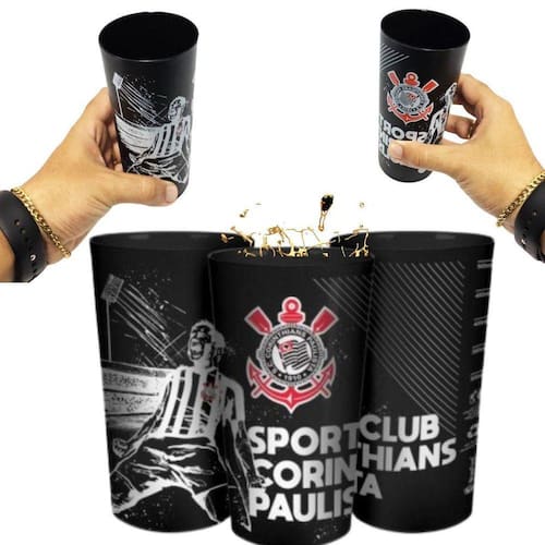 Kit 2 copos plástico premium grande sport clube corinthians timão 500ml unidade oficial Detalhes Kit 2 unidaes