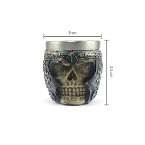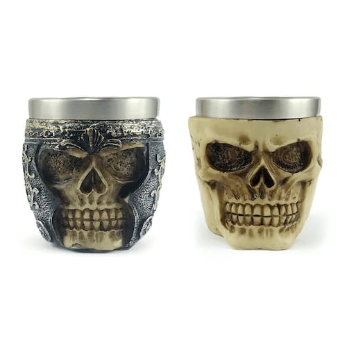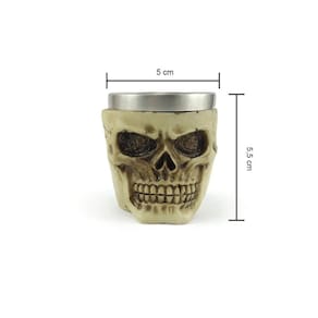 Kit 2 Copos para shot modelo caveira, lindo com seu interior em aço inox e exterior em resina, confeccionado de modo semi-artesanal, ideal pra quem gosta de tomar um shot com família e amigos, pode ser usado como decoração por conta do fino acabamento e é uma ótima opção para presentear familiares e amigos.