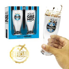 Kit 2 Copos Tulipa Munich Cerveja +1 Caneca Gel Térmica Escudo Time Grêmio Azul Selo