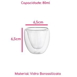 Características: Altura: 6,5cm Diâmetro: 6,5cm Capacidade: 80ml Material: Vidro Borossilicato Marca: Class Home Conteúdo: 2 Copos