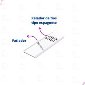 Este cortador e ralador permite cortar em fatias e ralar em fios grossos. É ideal para fazer salada de legumes com o corte julienne em fios grossos . Pode ser utilizado também para fatiar batatas no estilo chips e cortar legumes em fatias bem fininhas, pois ele é dupla face. Com ele você pode fazer fios do tipo espaguete com abobrinha e/ou cenoura.