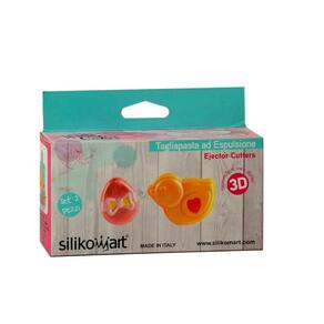 O kit de cortadores para massa de Páscoa da Silikomart é um conjunto de dois cortadores sem componentes metálicos.