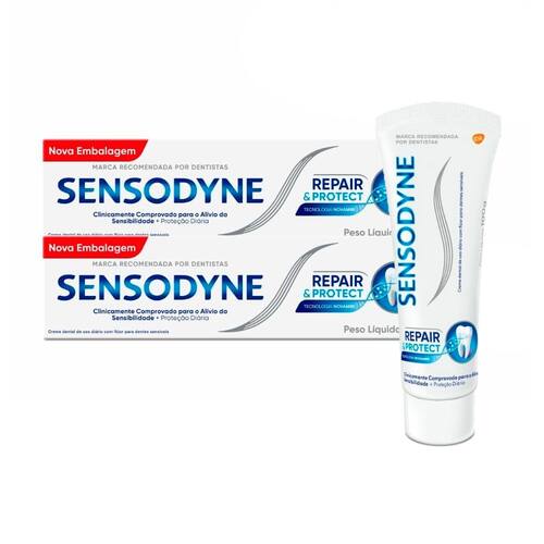 Se você se preocupa com o desconforto nos dentes toda vez que vai tomar um sorvete, comer um doce, beber um café ou ingerir alguma bebida gelada, o creme dental Sensodyne é seu aliado na tarefa de no alívio da sensibilidade nos dentes. Graças a sua fórmula exclusiva com a Tecnologia NovaMin, forma uma camada protetora resistente sobre as áreas mais sensíveis dos dentes*, trazendo mais tranquilidade e conforto para você comer e beber o que quiser. Sua fórmula exclusiva fornece um alívio clinicamente comprovado*, proporcionando proteção duradoura contra a dor de dente causada pela sensibilidade, ajudando a combater o desconforto e auxiliando nos cuidados com a saúde bucal, com escovação diária, duas vezes ao dia. Não é nenhuma surpresa que Sensodyne seja o creme dental número 1 no mundo para dentes sensíveis ¹, com anos de pesquisa científica e que pode devolver a você o prazer de saborear suas comidas favoritas. Aproveite dos benefícios da reparação e proteção diária de áreas sensíveis dos dentes, proporcionados por Sensodyne Repair & Protect, a marca recomendada pelos dentistas². *Com escovação diária, 2x ao dia. Ean: 7896015525583