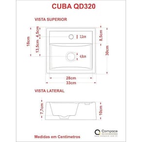 A cuba Q32 tem seu design quadrado, especial para pequenos espaços e um excelente escoamento de água. Fabricada em mármore sintético com acabamento em Hard Lacca PU, material bem semelhante a louça, muito resistente e mais econômico. Altura do Conjunto: 10 cm Ambiente: null Ambiente Principal: Banheiro Cor: Cinza Informação Complementar: 2x Cuba para Banheiro Q32W Cinza Largura: 30 cm Altura: 10 cm Peso: 3,75 kg