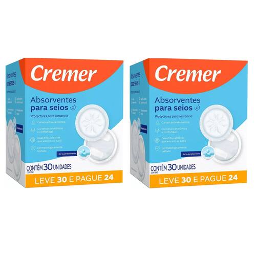 Kit com 02 caixas de absorvente para seios Cremer c/30