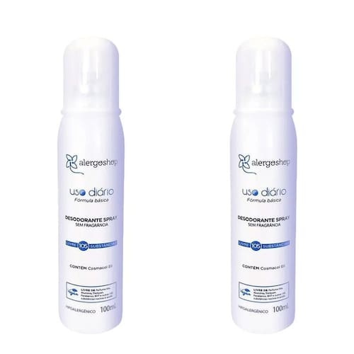 O Desodorante Spray Sem Fragrância da Alergoshop foi especialmente formulado para peles sensíveis, com textura leve e toque seco. Livre de 105 substâncias potencialmente irritantes (como álcool, corantes, alumínio e parabenos), ele é ideal para quem busca proteção suave sem bloquear a transpiração.