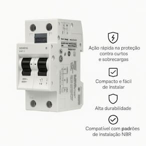 Kit 2 Disjuntores Bipolar Siemens Curva B 32A é ideal para proteção de circuitos elétricos residenciais, comerciais e industriais leves. Atua interrompendo automaticamente o circuito em casos de sobrecarga ou curto-circuito, garantindo segurança e confiabilidade.