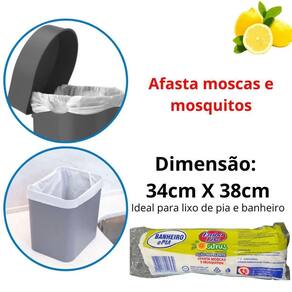 O que você vai receber: Kit com 2 Saco de lixo pia e banheiro citrus com 30un cada. Descrição do Produto: Embalixo Saco de Lixo Pia e Banheiro Citrus 34x38 O Embalixo Saco de Lixo Pia e Banheiro Citrus 34x38 é a solução ideal para quem busca praticidade e eficiência na hora de organizar e descartar resíduos de forma higiênica. Desenvolvido especialmente para ambientes como pia de cozinha, banheiro e áreas pequenas, este saco de lixo oferece resistência, funcionalidade e frescor em um único produto. Modo de Uso: 1. Coloque o saco de lixo no cesto ou suporte destinado ao descarte de resíduos, ajustando-o de acordo com o tamanho do recipiente. 2. Utilize para o descarte de resíduos pequenos e médios, como restos de alimentos, papéis, toalhas, cotonetes e outros itens comuns em banheiros e pias de cozinha. 3. Quando o saco estiver cheio, amarre as extremidades do saco e descarte-o de forma apropriada. Características e Qualidades: Tamanho Ideal: Com dimensões de 34x38 cm, o saco é perfeito para lixeiras de tamanho médio, oferecendo espaço adequado para o descarte sem ser excessivo, otimizando o uso do espaço. Resistência: Fabricado com material de alta qualidade, o Embalixo Saco de Lixo Citrus é extremamente resistente a rasgos e perfurações, mesmo quando carregado com resíduos pontiagudos ou pesados. Isso garante maior durabilidade e evita vazamentos. Aroma Citrus: A fragrância refrescante de citrus proporciona uma sensação de frescor, neutralizando odores indesejados. Ideal para ambientes como banheiros e cozinhas, onde o controle de cheiro é fundamental para manter o ambiente agradável. Além de ter ação repelente afastando os mosquitos e moscas do lixo Praticidade: A embalagem do saco de lixo é fácil de manusear, permitindo a rápida e eficiente. Seu formato facilita o encaixe perfeito na lixeira, sem escorregar ou amassar. Design e Funcionalidade: Seu material flexível se adapta facilmente à forma do recipiente, tornando o descarte de lixo mais simples e sem complicação. Além disso, a qualidade do plástico não prejudica o meio ambiente, sendo mais sustentável. Versatilidade: Pode ser em diferentes tipos de lixeiras: na pia da cozinha, no banheiro, em áreas de serviço ou até mesmo em quartos e escritórios. Seu uso é versátil e eficiente em diversos ambientes da casa. Palavras-chave Saco de lixo Pia e banheiro Citrus Resistente Higiene Prático Aroma refrescante Organize sua casa Antiodor Tamanho ideal 34x38 O Embalixo Saco de Lixo Pia e Banheiro Citrus 34x38 oferece não apenas um produto funcional e resistente, mas também a praticidade necessária para o dia a dia, com um toque de frescor que contribui para ambientes mais agradáveis. Ideal para quem busca eficiência e qualidade em sua rotina de limpeza e organização.