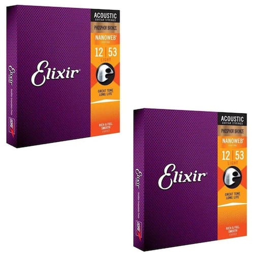 2 Jogos de 6 cordas Elixir Para Violão Aço 012 (12 Cordas)