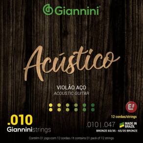 Kit 2 Encordoamento Violão Giannini Acústico 65/35 0.10 12 cordas Descrição: O Encordoamento para Violão Giannini Acústico 65/35 0.10 para 12 Cordas é uma escolha excepcional para músicos que buscam um timbre brilhante e equilibrado, combinado com a durabilidade confiável que a Giannini proporciona. Projetado para atender às exigências dos violões de 12 cordas, este encordoamento oferece uma sonoridade envolvente e uma experiência de tocar agradável. Principais Características: Calibre 0.10: As cordas têm um calibre equilibrado de 0.10, proporcionando uma combinação precisa de resistência e tocabilidade. Esse calibre é ideal para violões de 12 cordas, oferecendo uma resposta equilibrada e facilitando a execução. 65/35 Bronze: Construídas com a liga de bronze 65/35, essas cordas proporcionam um timbre distintivo e balanceado. O bronze 65/35 oferece uma resposta tonal quente e brilhante, realçando as características sonoras únicas dos violões de 12 cordas. Durabilidade Confiável: Projetadas para resistir ao desgaste constante do toque e da vibração, essas cordas Giannini oferecem durabilidade confiável. Isso significa que você pode contar com um desempenho consistente ao longo do tempo. Projeção Sonora Aprimorada: O design cuidadoso dessas cordas visa melhorar a projeção sonora, permitindo que o som do violão de 12 cordas seja ouvido de maneira clara e definida. A projeção sonora aprimorada contribui para uma experiência auditiva envolvente. Sonoridade Encorpada: Ao utilizar um encordoamento projetado especificamente para violões de 12 cordas, você obtém uma sonoridade encorpada e rica em harmônicos. Cada corda contribui para a criação de um som completo e envolvente que caracteriza esse tipo de instrumento. Versatilidade Musical: Adequadas para uma ampla variedade de estilos musicais, essas cordas oferecem versatilidade para músicos que exploram diferentes gêneros em seus violões de 12 cordas. Construção de Alta Qualidade: Fabricadas com atenção aos detalhes e elevados padrões de qualidade, as cordas Giannini para violão de 12 cordas são projetadas para resistir às demandas do uso regular, mantendo a integridade tonal. O Encordoamento para Violão Giannini Acústico 65/35 0.10 para 12 Cordas é uma escolha confiável para músicos que desejam aproveitar ao máximo a sonoridade rica e envolvente de seus violões de 12 cordas. Seja você um entusiasta ou um músico , essas cordas oferecerão uma experiência musical gratificante e inspiradora. Sobre nossa loja: Com muito orgulho e paixão pela música, a E Musical tem o prazer de servir desde o ano de 2009. Durante esses anos, nos dedicamos incansavelmente a fornecer uma ampla gama de instrumentos musicais, equipamentos de áudio, acessórios e serviços de qualidade excepcional para músicos de todos os níveis e estilos. Lojaemmusical Jacareí SP Marca: Não Informado
