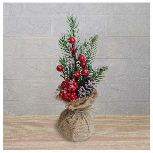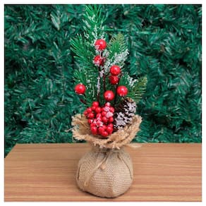 Kit 2 Enfeite De Mesa Natal Berry Vermelhos E Saco De Juta 28cm - Esta é uma pequena árvore de Natal bem decorada. Ele possui um visual adorável e artesanato refinado, uma decoração de mesa exclusiva. O design bonito é muito atraente e não vai haver muito espaço. Crie uma cena de Natal com este maravilhoso enfeite de árvore de Natal. É ótimo para o Natal, criando uma atmosfera festiva para o festival.