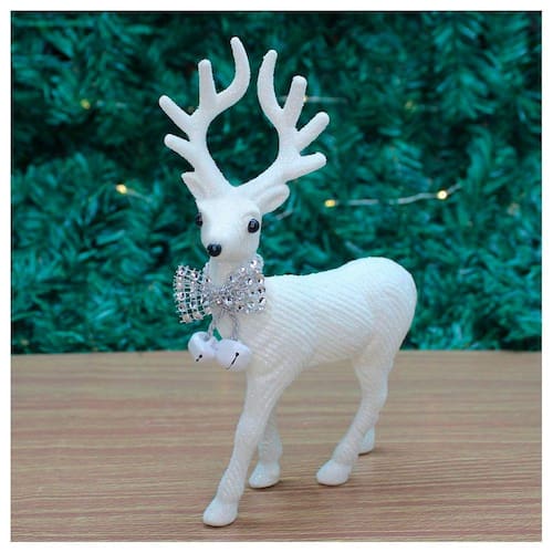 Kit 2 Enfeites Decorativos Rena Branca Com Guizo Natal 21cm -