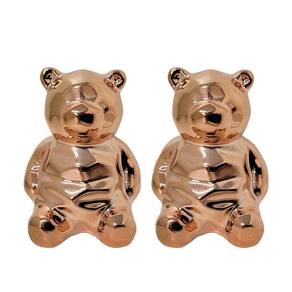 -02 unidades Enfeite Urso Decorativo Porcelana Lapidado Rosê Gold 8cm