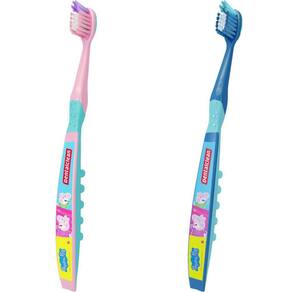 A escova dental infantil possui cabo emborrachado, cerdas arredondadas e polidas que garantem conforto na hora da escovação.