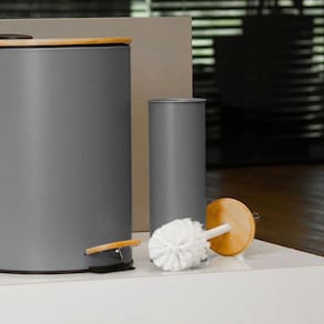 Kit 2 escova sanitária com tampa de bambu e suporte soft ========== sobre o produto ========== A escova sanitária com tampa de bambu e suporte soft é a escolha perfeita para manter seu banheiro limpo e elegante. Fabricada com materiais de alta qualidade, a escova possui cerdas resistentes que garantem uma limpeza eficiente sem danificar as superfícies. O suporte moderno conta com tampa de bambu, agregando um toque natural e sofisticado ao ambiente. Compacta e discreta, é ideal para quem busca praticidade e estilo. ========== especificações ========== Tampa de bambu natural, ecológica e sofisticada. Escova com cerdas resistentes para uma limpeza eficiente. Suporte moderno e compacto, que mantém a escova sempre organizada. Design discreto, ideal para diversos estilos de banheiro. ========== ficha técnica ========== Cor: cinza Unidades: 2 Medidas: 38 x 9,5cm Material: inox / plástico / nylon / bambu Marca: paramount : 3 meses Estamos online para quaisquer dúvidas, Agradecemos e aguardamos o seu pedido. P: a tampa de bambu é resistente à umidade R: sim, a tampa possui tratamento para maior resistência à umidade. P: a escova é removível para troca R: sim, a escova pode ser removida para ou limpeza. P: o produto é novo ou Marca: Não Informado