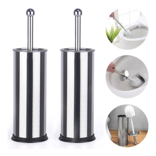 CONTÉM:• 2 Escova sanitária com cerdas flexíveis• 2 Suporte em aço inox com tampa em inox e base emborrachada • Altura: 30 cm• Largura: 10cm