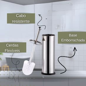 • Escova sanitária com cerdas flexíveis• Cabo da escova em aço inoxidável• Suporte em aço inox com base emborrachada• Tampa do suporte em aço inoxidável