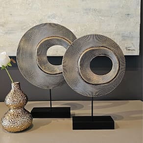 Kit 2 Escultura Abstrata Dourada Decoração Redonda Kit Escultura Decorativa em MDF com Relevo Marrom e Dourado - 2 Peças