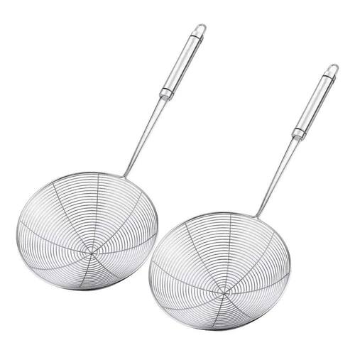 Kit 2 Escumadeira Fritadeira De Inox Redonda Para Frituras