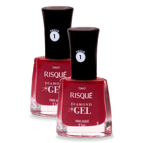 Kit 2 Esmalte Risqué Diamond Gel Cor Vinho Bordô 9,5ml