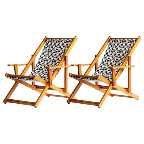 Kit 2 Espreguiçadeira Preguiçosa Dobrável Mel Cb-triang Preto 2 ESPREGUIÇADEIRAS ENVERNIZADA MEL C/BSabe aquele final de tarde que você tanto espera para tirar um descanso merecido? Ou aquela viagem para a praia programada a meses com a família? Pois é, nossas cadeiras espreguiçadeira serve exatamente para esses momentos, com várias opções de cores, os tecidos além de charmosos são hidro-repelentes e se adequam a qualquer ambiente, facilmente removíveis para higienização.Estrutura 100% de madeira maciça de ótima qualidade, a espreguiçadeira é totalmente dobrável e reclinável (4 posições de ângulo), com descanso para braço, sendo possível montar invertida sem o encosto de braço, perfeita para seu lazer em todos os ambientes, esse é o item que definitivamente não pode faltar na vida de quem de fato, quer aproveitar bons momentos! FICHA TÉCNICA DO PRODUTO:04 Níveis de Regulagem de Altura;Tecido Reforçado;Fabricada em Madeira Maciça Pinus;Peso aproximado: 7,5 Kg;Suporta aproximadamente 120 kg;Cor da Madeira: Mel Dimensões aproximadas do Produto:Altura 1: 69 cm;Altura 2: 82 cm;Altura 3: 91 cm;Altura 4: 100 cm;Profundidade: 105 cm. Dimensão aproximada total:Comprimento: 135 cm;Largura: 66 cm; Informações Adicionais:Garantia: 90 dias contra defeitos de fabricação.Acompanha 2 cadeiras Obs. A cor pode variar da foto conforme a tonalidade da madeira e iluminação.. !! Marca: Brasil Móveis