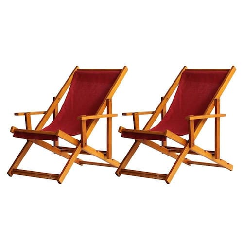 Kit 2 Espreguiçadeira Preguiçosa Dobrável Mel Cb-vermelho 2 ESPREGUIÇADEIRAS ENVERNIZADA MEL C/BSabe aquele final de tarde que você tanto espera para tirar um descanso merecido? Ou aquela viagem para a praia programada a meses com a família? Pois é, nossas cadeiras espreguiçadeira serve exatamente para esses momentos, com várias opções de cores, os tecidos além de charmosos são hidro-repelentes e se adequam a qualquer ambiente, facilmente removíveis para higienização.Estrutura 100% de madeira maciça de ótima qualidade, a espreguiçadeira é totalmente dobrável e reclinável (4 posições de ângulo), com descanso para braço, sendo possível montar invertida sem o encosto de braço, perfeita para seu lazer em todos os ambientes, esse é o item que definitivamente não pode faltar na vida de quem de fato, quer aproveitar bons momentos! FICHA TÉCNICA DO PRODUTO:04 Níveis de Regulagem de Altura;Tecido Reforçado;Fabricada em Madeira Maciça Pinus;Peso aproximado: 7,5 Kg;Suporta aproximadamente 120 kg;Cor da Madeira: Mel Dimensões aproximadas do Produto:Altura 1: 69 cm;Altura 2: 82 cm;Altura 3: 91 cm;Altura 4: 100 cm;Profundidade: 105 cm. Dimensão aproximada total:Comprimento: 135 cm;Largura: 66 cm; Informações Adicionais:Garantia: 90 dias contra defeitos de fabricação.Acompanha 2 cadeiras Obs. A cor pode variar da foto conforme a tonalidade da madeira e iluminação.. !! Marca: Brasil Móveis