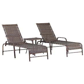 Kit 2 Espreguiçadeiras Catar e Mesa com Pintura Eletrostática Piscina Jardim Alumínio Trama - Marrom Escuro