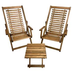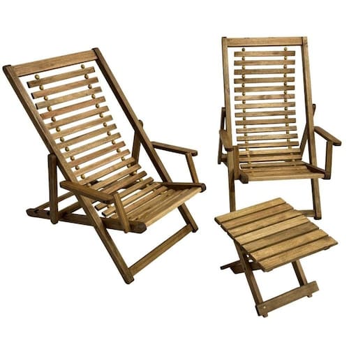 Kit 2 Espreguiçadeiras de Madeira com Mesinha/Banquinho Multiuso Madeiral -