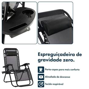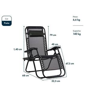 A espreguiçadeira Gravidade possui travas de posição reclinável ajustáveis sob cada apoio de braço para manter a cadeira em uma posição adequada. Pode ser ajustada da maneira que desejar para o máximo conforto. Fácil de transportar e armazenar; A estrutura torna o dobramento da cadeira simples. Inclui apoio de cabeça removível e ajustável. Estrutura robusta e tecido durável.