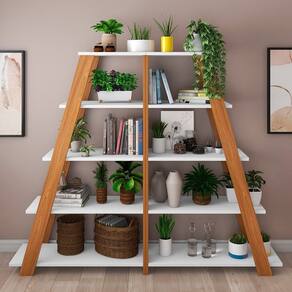 O Kit 2 Estante Multiuso Decorativa 5 Prateleiras Stela A06 Freijó/Branco, da Mpozenato, é perfeito para adicionar um toque de estilo moderno à sua casa.