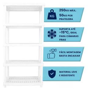 Detalhes do produto: - É de responsabilidade do montador seguir as instruções do Manual de Montagem, que são fundamentais para garantir a estrutura da estante; - Produto enviado desmontado, a montagem é simples e pode ser realizada facilmente com a ajuda do manual de montagem; - Feito em plástico virgem atóxico; - Aguenta até -15 C; - Montagem fácil e prática; - Não enferruja; - Muito leve e resistente; - Aguenta até 50 kg por prateleira; - Cada produto suporta até 250kgs.