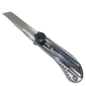 Kit 2 estilete de aluminio ajax profissional com 1 lamina de 18mm Kit com: 2 estilete de aluminio ajax profissional com 1 lamina de 18mm Indicado para realizar cortes em geral, o estilete de alumínio ajax conta ainda com guia metálica, botão parafuso giratório que permite travar a lâmina facilitando seu manuseio. Por seu corpo ser todo em liga de alumínio, ele, além de bonito, fica ainda mais resistente para uso casual ou profissional. Sku: a06021 Acompanha: 1 lâmina Tamanho da lâmina: 18 mm Dimensões do produto sem embalagem: cxlxa cm 4,2x2,3x15,5 cm Peso unitário: 0,085 kg