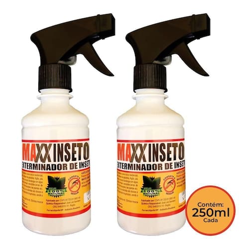 AS IMAGENS SÃO MERAMENTE ILUSTRATIVAS E PODEM SOFRER VARIAÇÕES DE COR E PEQUENOS DETALHES DE ACORDO COM O SEU MONITOR, ILUMINAÇÃO DO AMBIENTE E ATÉ MESMO A SUA PERCEPÇÃO VISUAL.Kit 2 Exterminadores de Baratas Maxxinseto Power 250 Ml - 100% Natural