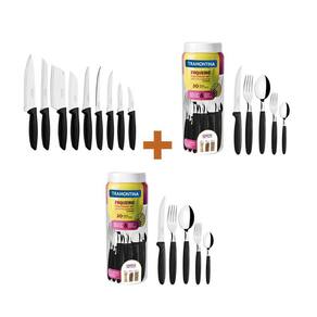 - 2 Faqueiros Inox 30 Peças Ipanema Preto - Tramontina