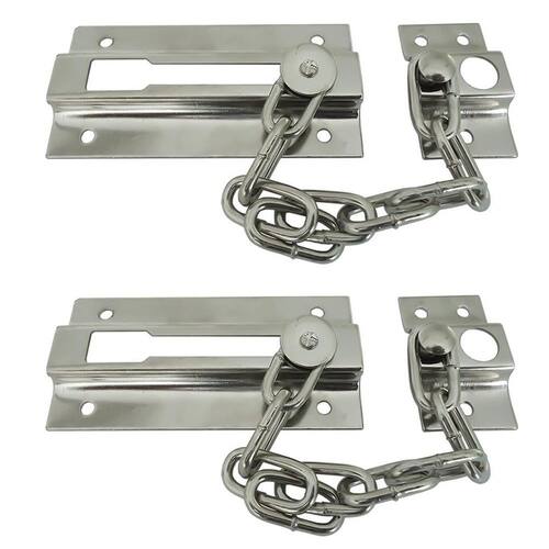 Kit com 2 Fechos Pega Ladrão com Corrente 88mm x 25mm para Portas Guepar O fecho para portas cromado com corrente leva mais segurança para a sua casa. Kit completo para instalação em portas, com parafusos. - Marca: Guepar - Referência: 861-3060-2X - Jogo exckusivo com 2 fechos para porta - Fabricado em ferro - Acabamento Cromado - Acompanha parafusos - Comprimento da base porta; 8,5cm - Largura da base porta; 4,3cm - Comprimento da base batente; 2,5cm - Largura da base batente; 4,3cm - Comprimento da corrente; 15cm - Largura da corrente; 12mm - Grossura da chapa; 1mm - Peso bruto: 96 gramas - : 90 dias