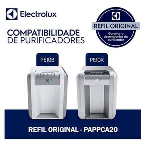 Kit 2 filtro refil electrolux pe 10 pe10b pe10x pappca20 2 pçs pappca20 Compatível somente com os modelos: Pe 10 - pe10b e pe10x Referência do refil: pappca20 caso tenha dúvida de qual é o modelo do aparelho, a referência dele geralmente fica em uma etiqueta na parte de trás ou do lado do purificador Filtro específico apenas para os modelos descritos acima Caso o seu modelo seja outro, ele utiliza outro modelo de refil. O filtro remove o cloro da água, elimina sabores, retém partículas de sujeira, barro, ferrugem, entre outras partículas. As marcas e produtos citados e ilustrados são propriedades de seus respectivos fabricantes e aparecem apenas para demonstrar a compatibilidade deste produto. --------------------------------------------------------------------------- Marca do refil: electrolux Modelo: pappca20 Eficiência da retenção de partículas: classe iii Eficiência da redução de cloro livre: aprovado Produto de acordo com a abnt nbr:16098:2012 e portaria 394/2014 do inmetro. Prazo de validade indeterminado até sua instalação. Pode guardar tranquilo O prazo para troca do refil passa a ser contado apenas após sua instalação, conforme consta no manual do aparelho. --------------------------------------------------------------------------- total contra defeitos de fabricação por um período de pelo menos 3 meses. O elemento filtrante pode saturar antes de sua vida útil prevista dependendo das condições da água de onde será instalado, como excesso de barro, areia, ferrugem e outras impurezas sólidas. Marca: Não Informado