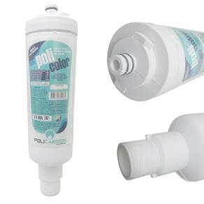 Remove o cloro da água, elimina sabores, retém partículas de sujeira, barro, ferrugem, eleva o Ph e inibe a proliferação de bactérias.