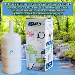 Kit 2 filtro refil torneira filtro bica móvel compatível lorenzetti acqua bella vitalle imperatriz delta herc forusi Kit com 2 peças - refil universal compatível com torneiras com filtro Compatível com os seguintes modelos: lorenzetti acqua bella, vitalle, imperatriz, delta, herc, forusi, ellen, sap, viqua e+, whilcla, entre outros. Serve nos filtros que usam rosca longa ou curta. Caso sua torneira use o filtro com rosca curta, basta cortar a rosca no ponto já indicado, assim ele servirá perfeitamente. A vela universal alcalina da mpf filtros, foi lançada com objetivo de deixar a sua água alcalina, que ajuda a equilibrar o ph do corpo, melhorando assim o nosso sistema imunológico e aumentando a capacidade do organismo em prevenir diversas doenças. O refil/vela da mpf filtros é o único que pode ser utilizado tanto como rosca curta como rosca longa, pois contém um sistema de corte simples no topo do elemento, identificado em sua caixinha para a fácil percepção do cliente. A vela/filtro, assim comumente chamada, conta com 4 etapas de filtragem, são elas: 1º polipropileno - retém partículas como barro, areia, ferrugem, entre outros contaminantes presentes na água. 2º carvão ativado com sais de prata - reduz gostos, odores e cloro, devido ao carvão ativado com prata que faz o papel de inibir a proliferação de bactérias. 3º alcalinização da água - aumento do ph da água, deixando-a ideal para o consumo humano. 4º polipropileno - clarifica a água em seu estágio final para que a mesma fique cristalina. Este refil/vela é um elemento de reposição compatível com purificadores de torneira. A troca é recomendada a cada 6 meses ou após percepção da diminuição do fluxo de água da torneira. Ficha técnica: Compatibilidade: purificadores de torneira Vida útil: 1.500 litros ou 6 meses Pressão de operação: 0,3 a 4,0 kgf/cm 3 a 40 mca Vazão: 20 litros/hr Retenção de partículas: classe c 5 a 15 micras Retenção de cloro livre: aplicável O filtro remove o cloro da água, elimina sabores, retém partículas de sujeira, barro, ferrugem, entre outras partículas. As marcas e produtos citados e ilustrados são propriedades de seus respectivos fabricantes e aparecem apenas para demonstrar a compatibilidade deste produto. Marca do refil: mpf Modelo: vela universal Eficiência da retenção de partículas: classe iii Eficiência da redução de cloro livre: aprovado Produto de acordo com a abnt nbr:16098:2012. Prazo de validade indeterminado até sua instalação. Pode guardar tranquilo O prazo para troca do refil passa a ser contado apenas após sua instalação. total contra defeitos de fabricação por um período de pelo menos 3 meses. O elemento filtrante pode saturar antes de sua vida útil prevista dependendo das condições da água de onde será instalado, como excesso de barro, areia, ferrugem e outras impurezas sólidas.