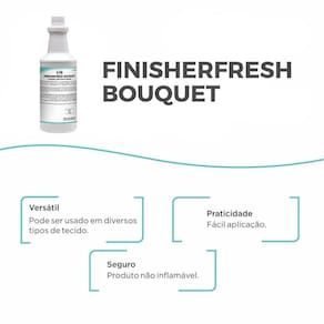 Finisherfresh bouquet é um facilitador para passar roupas e tecidos de fibras naturais e sintéticas presentes em toalhas, lençóis, edredons, cobertores, cortinas, entre outros, eliminando a aspereza e otimizando o efeito de passadoria, deixando os tecidos macios e perfumados por longos períodos.