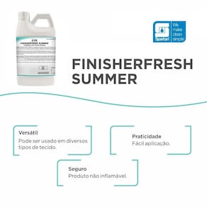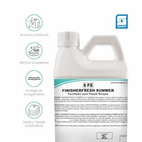 Finisherfresh summer é um facilitador para passar roupas e tecidos de fibras naturais e sintéticas presentes em toalhas, lençóis, edredons, cobertores, cortinas, entre outros, eliminando a aspereza e otimizando o efeito de passadoria, deixando os tecidos macios e perfumados por longos períodos.