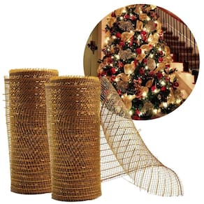 Fita Decorativa Natal Tela Tule Trançada Dourada 15cm x 5m – Flexível e Elegante