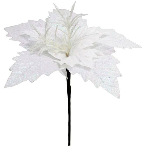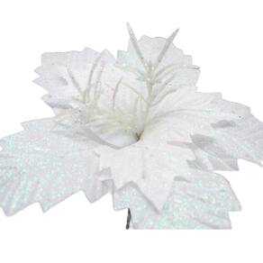 Kit 2 Flores Artificial Gliter Enfeite Branco Natalino 25cm -